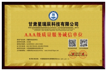 甘肅星瑞辰通過了AAA級質(zhì)量服務(wù)企業(yè)、AAA級重合同守信用企業(yè)、AAA級誠信經(jīng)營示范單位、AAA級信用企業(yè)、質(zhì)量管理體系認(rèn)證、環(huán)境管理體系認(rèn)證及職業(yè)健康安全管理體系等認(rèn)證......